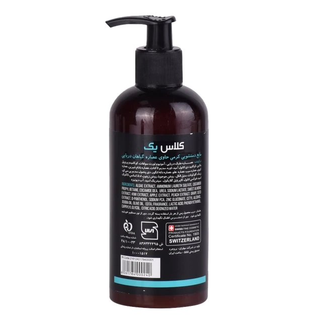 مایع دستشویی کرمی کلاس یک حاوی عصاره گیاهان دریایی یک محصول بی نظیر برای شستشو دست در منزل شماست کیفیت عطر و بو و میزان پاکیزگی بی نظیری دارد