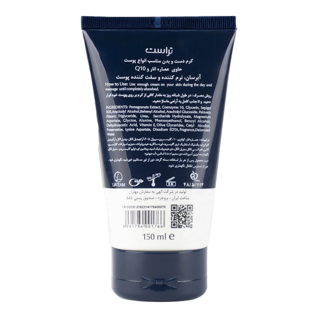 Q10 به کار رفته در کرم انار و Q10 تراست، با تحریک سنتز کلاژن، اثر جوانسازی (سفت کنندگی) بر پوست شما دارد. همچنین این کرم با بهرهگیری از اثر آنتی اکسیدانی منحصر به فرد عصاره انار موجب مهار رادیکالهای آزاد محیطی و ایجاد یک سد دفاعی بر روی پوست میشود. به دلیل خواص بینظیر Q10، طراحی این محصول به گونهای صورت گرفته است که همه افراد با هر نوع پوستی بتوانند از این محصول استفاده کنند. این محصول به عنوان سدی در برابر تبخیر آب پوستی عمل میکند که موجب جلوگیری از خشکی پوست میشود. کرم انار و Q10 تراست، همچنین برای کاهش اثرات اگزمای پوست بدن نیز پیشنهاد میشود.